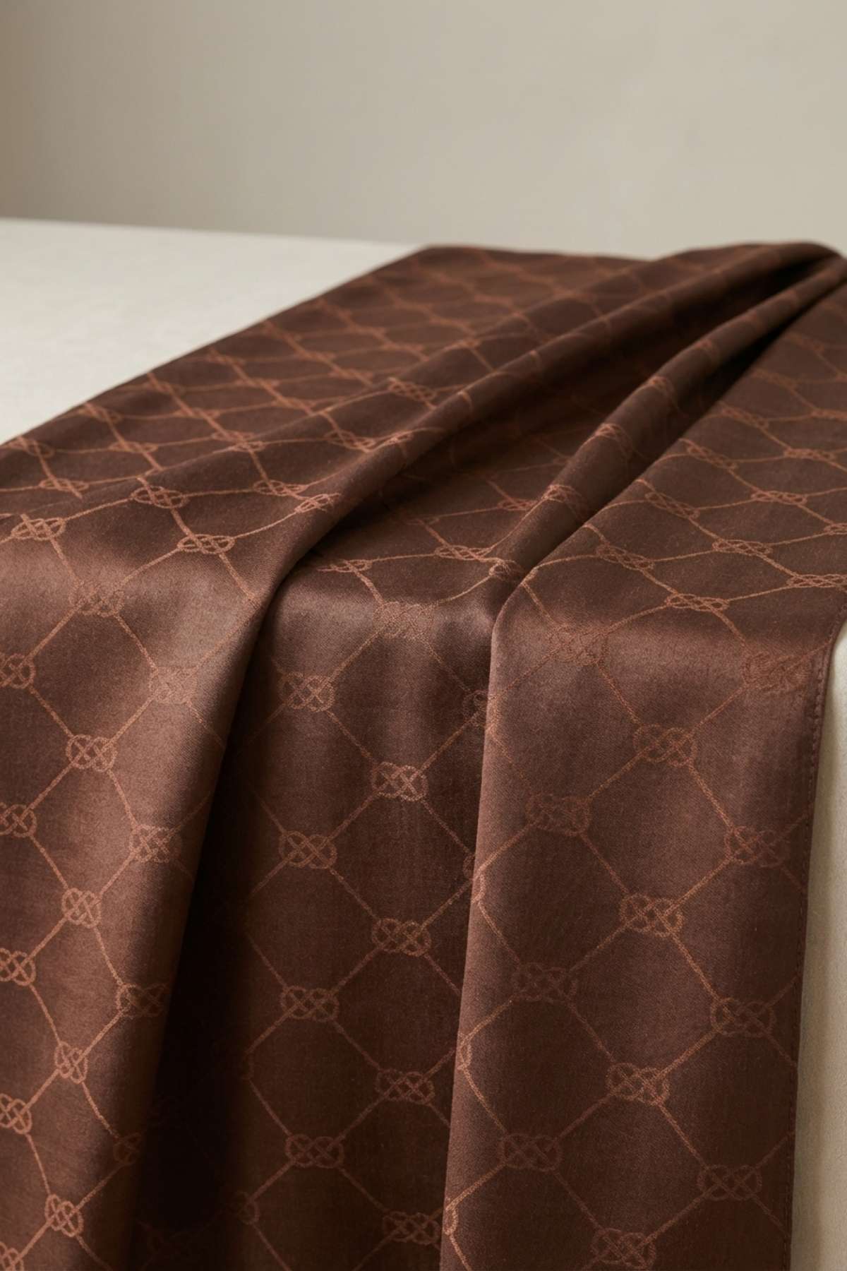 Jakarlı Monogram Desenli Şal Tarçın Kahve