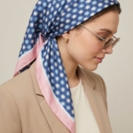 Mimelif Puantiye Desenli Lacivert Twill Eşarp