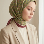 Mimelif Puantiye Desenli Yeşik Twill Eşarp