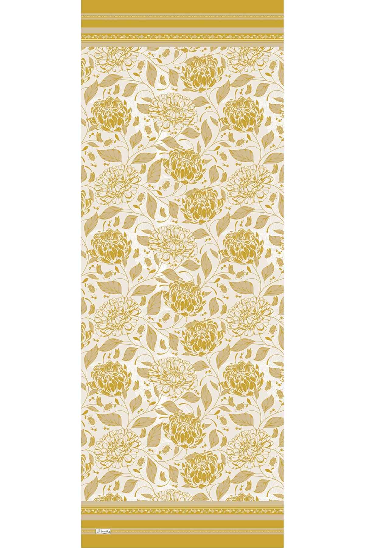 • Mimelif Floral Pamuk Vual Desenli Şal  Hardal