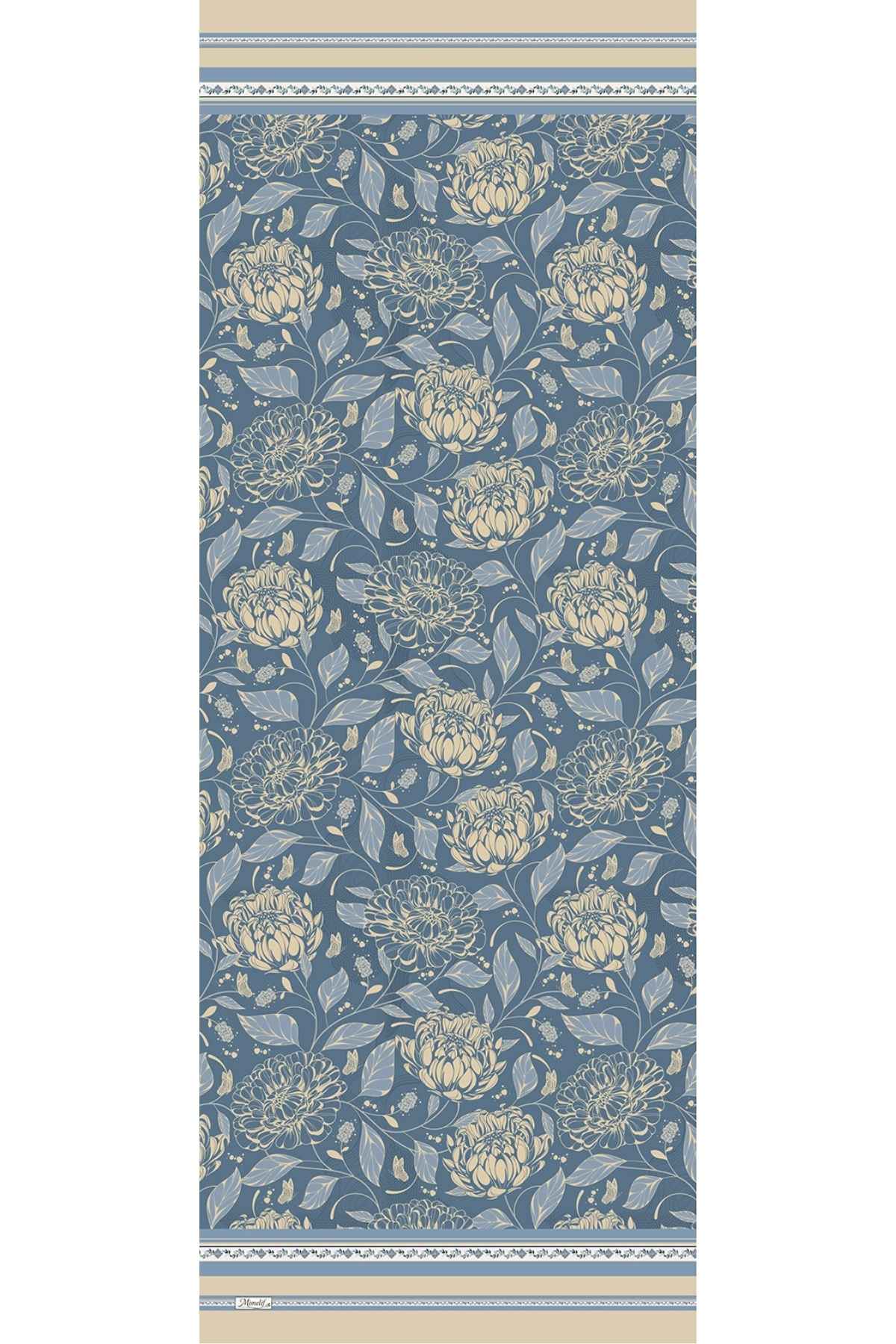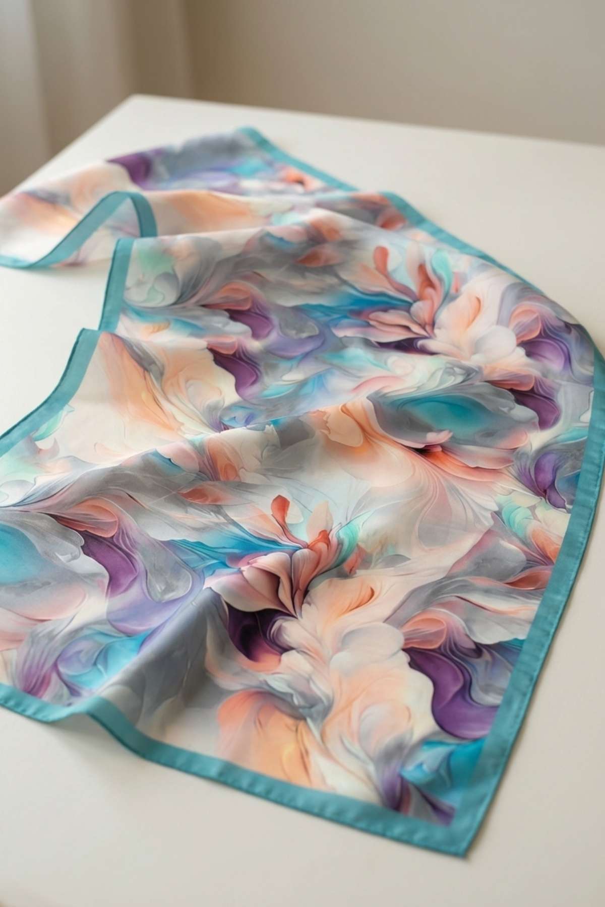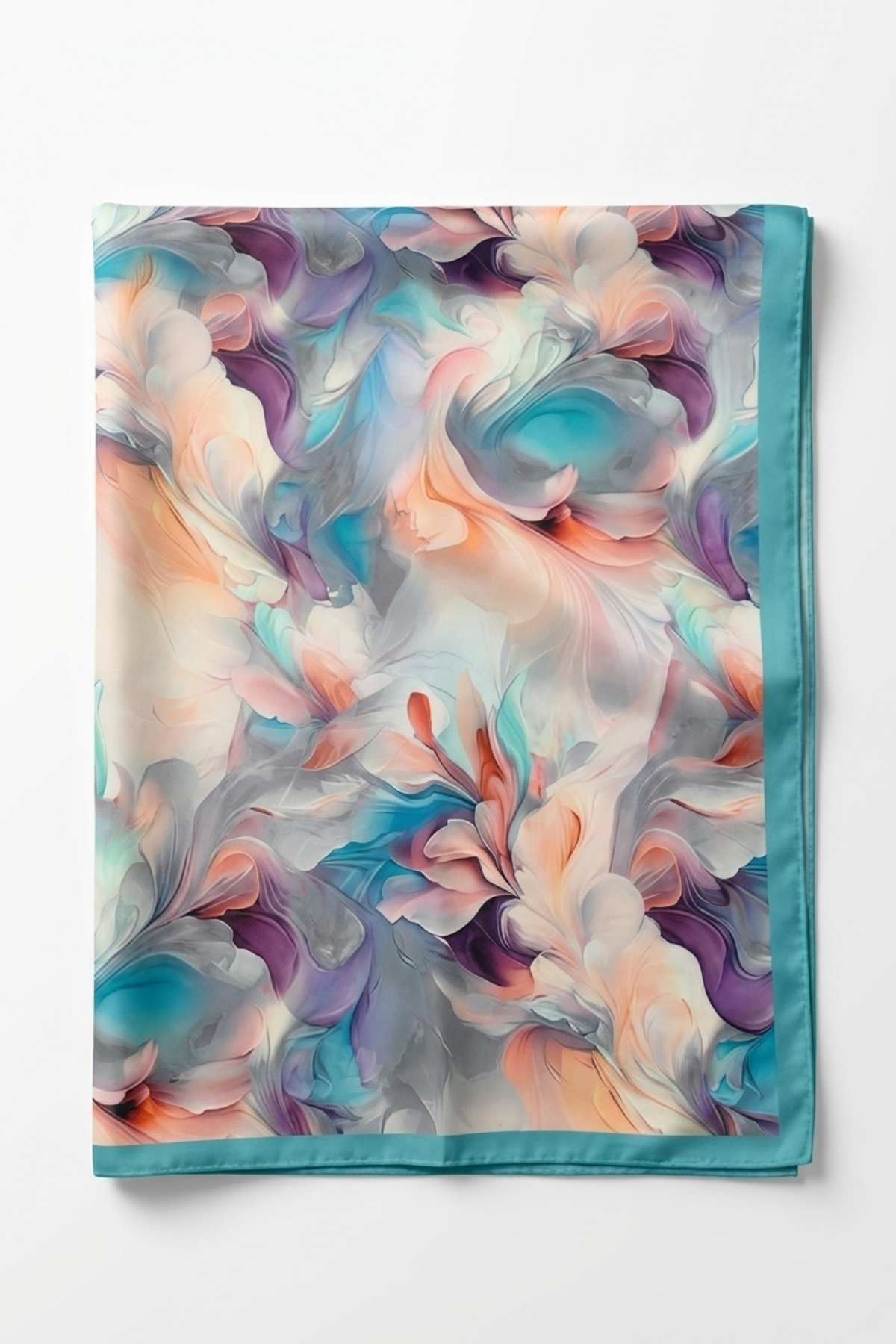 Yumuşak dokulu kumaşı sayesinde gün boyunca rahat kullanım sağlar. Kenarlarında yer alan turkuaz biyesi, desenin renk paletiyle uyumlu zarif bir çerçeve oluşturur.